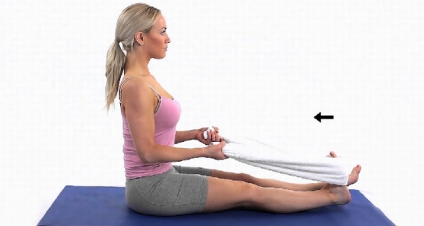 2.在你的腳下放一條毛巾,用雙手抓住兩端,拉兩邊。