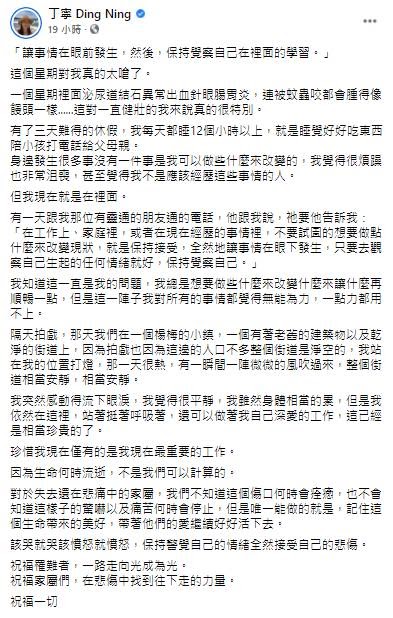 丁寧突然有感而發。(圖/翻攝自丁寧 Ding Ning Facebook)