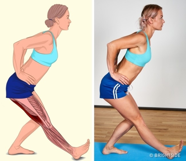 ▼後腿肌肉和肌腱: 後背挺直站立,雙手放在腰部,